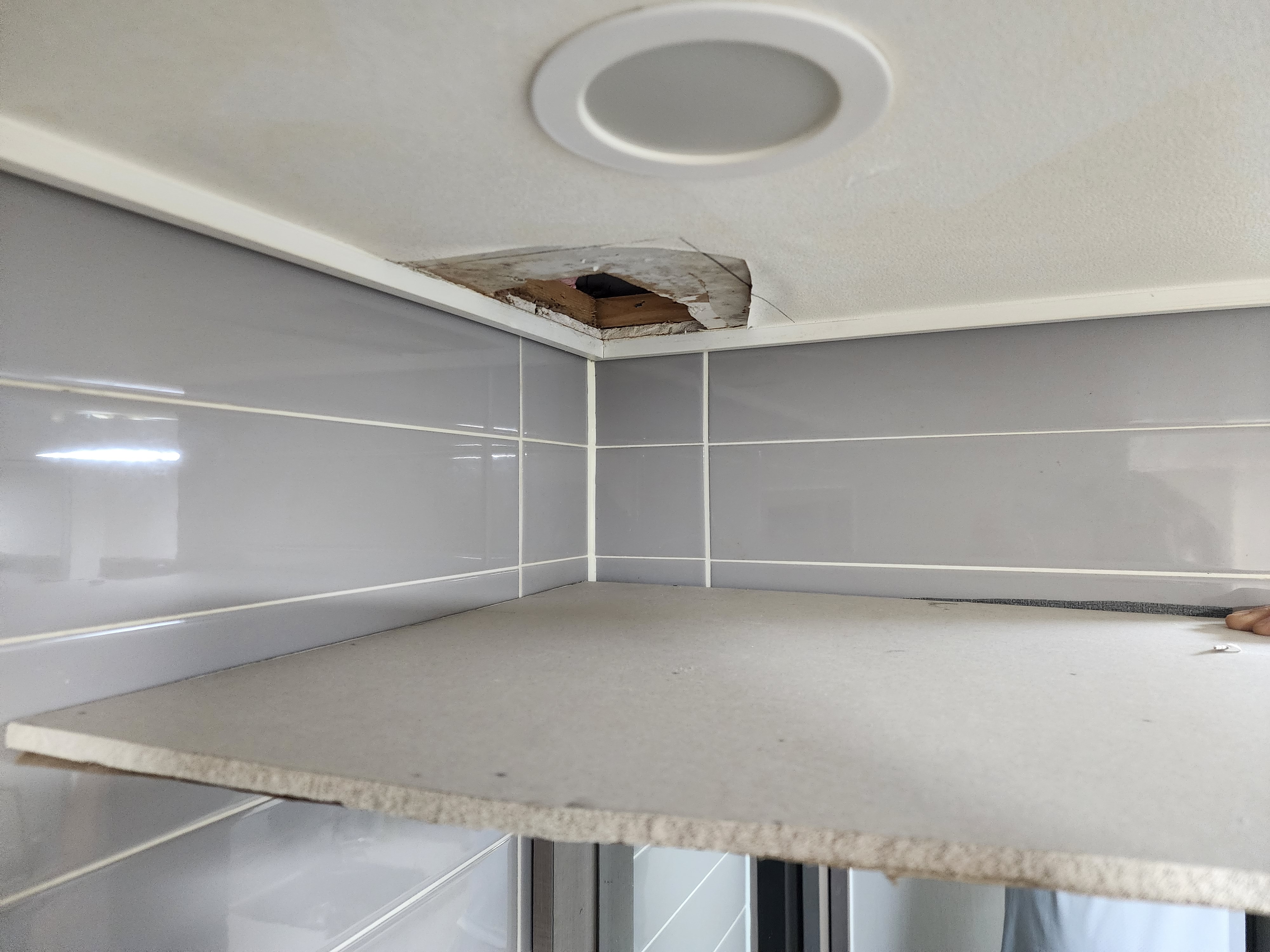 4. 기존 보드가 새 석고보드 모양대로 잘려서 타공이 끝났으면 이제 새 석고보드를 고정하기 위한 준비작업을 해야합니다.