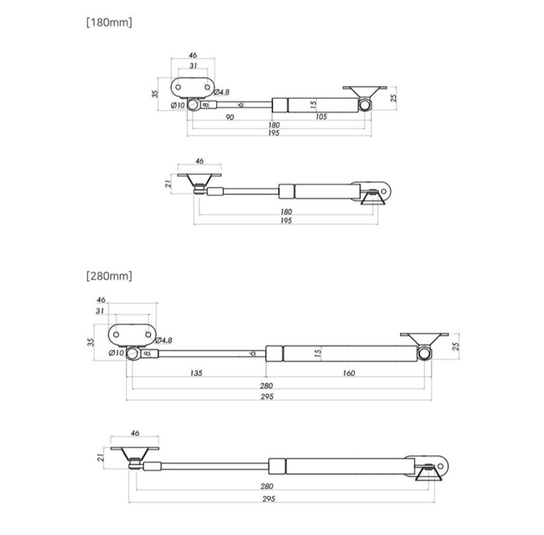 위로 여는 문이 열린 상태를 유지할수 있도록 지지해주는 가스쇼바이고 도어의 좌우에 하나씩 설치해서 사용합니다.