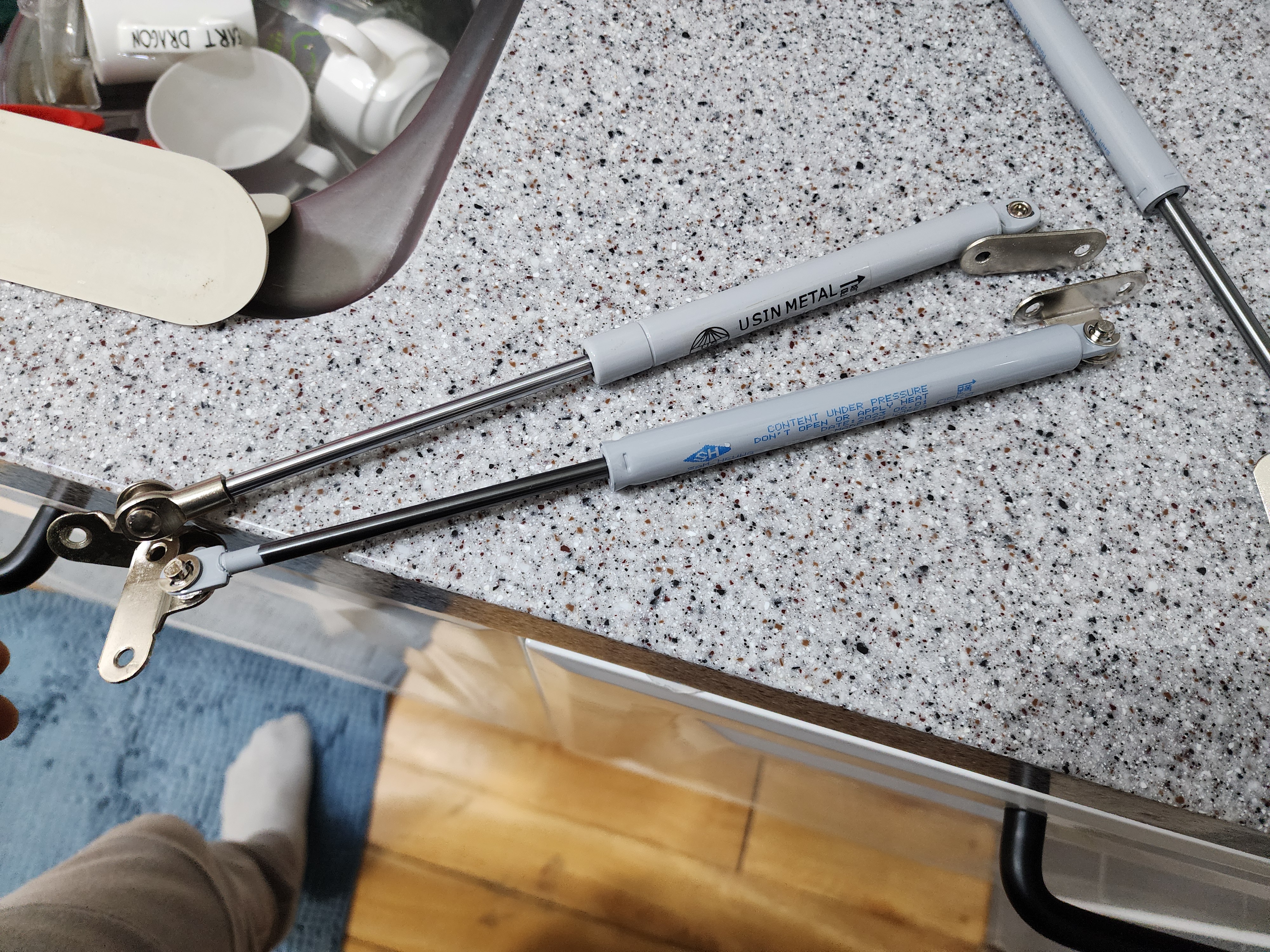 오늘은 싱크대 상부장의 플랩장 도어에 붙어있는 쇼바를 교체하는 방법입니다.